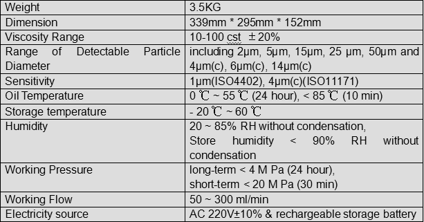 KLD-3 laser oil particle counter detects oil solid particle’s size, quantity and distribution. The machines friction, wear, leakage and normal aging process lead to solid particle or water that cause errors in critical components or subsystem of machinery. The oil could be hydraulic oil, lubricating oil, gearbox oil, insulating oil (transformer oil), etc.