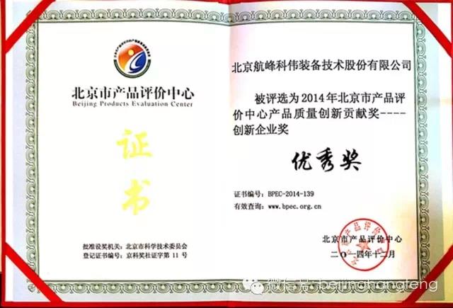 Product Evaluation Center organized by the Beijing Municipal Committee of experts conduct a comprehensive review of Beijing Hang Fung won the 2014 Beijing Products Quality Evaluation Center Product Innovation Award - Enterprise Innovation Award, this award is Beijing Hang Fung has insisted improve product quality , and constantly improve product quality management system recognition.