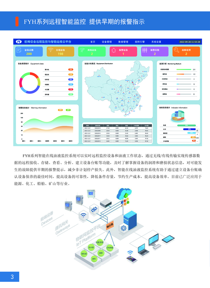 航峰油液智能監(jiān)控云盒通過監(jiān)測用油設(shè)備系統(tǒng)油品品質(zhì)及相關(guān)運(yùn)行參數(shù),對(duì)油品質(zhì)量和設(shè)備健康狀態(tài)進(jìn)行監(jiān)控和管理,及時(shí)發(fā)現(xiàn)故障隱患并精準(zhǔn)定位,為設(shè)備檢修和油品更換維護(hù)提供依據(jù)。