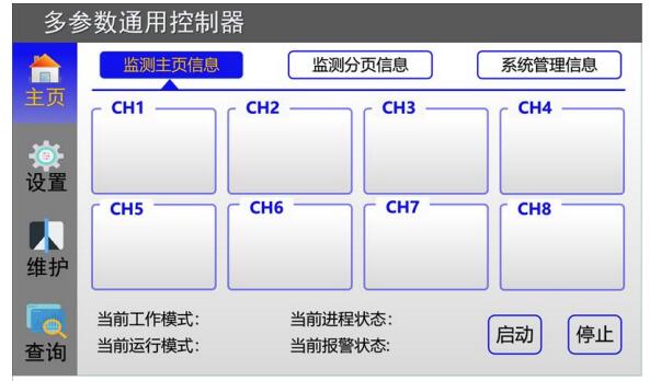 通用控制器使用7寸觸摸顯示器,可根據(jù)用戶選擇的采集通道數(shù),自動進(jìn)行布局顯