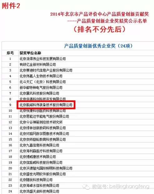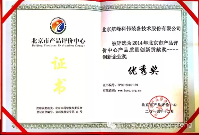 經(jīng)北京市產(chǎn)品評價(jià)中心組織專家評審委員會(huì)進(jìn)行綜合評審,北京航峰榮獲2014年北京市產(chǎn)品評價(jià)中心產(chǎn)品質(zhì)量創(chuàng)新貢獻(xiàn)獎(jiǎng)——?jiǎng)?chuàng)新企業(yè)獎(jiǎng),本次獲獎(jiǎng)是對北京航峰一直以來堅(jiān)持提升產(chǎn)品質(zhì)量、不斷完善產(chǎn)品質(zhì)量管理體系的肯定。